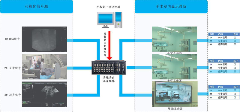 系統(tǒng)采用光纖直連傳輸與網(wǎng)絡(luò)傳輸兩種方式,其中光纖傳輸采用 G.652 D 8芯單模光纖,配合先進(jìn)的高清混合矩陣對(duì)手術(shù)室全部視頻進(jìn)行無(wú)損切換處理,對(duì)本地和遠(yuǎn)端的所有視頻圖像進(jìn)行實(shí)時(shí)切換及顯示,可根據(jù)需要將所需視頻自由切換到指定的顯示設(shè)備。達(dá)到視音頻絕對(duì)同步,使用戶(hù)獲得最佳觀(guān)看效果。